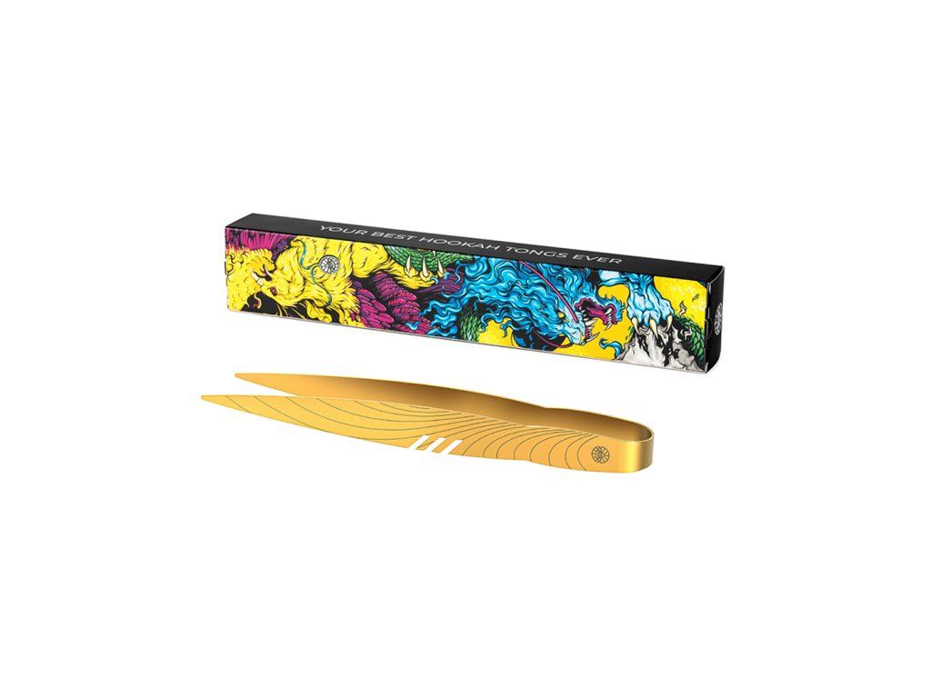 Tato varianta přichází v luxusním zlatém provedení. Kleště jsou vyrobeny z kvalitní nerezové oceli a vybaveny třemi praktickými otvory pro snadné zavěšení na talířek. Povrch doplňuje stylová gravura v klasickém designu Alpha Hookah.