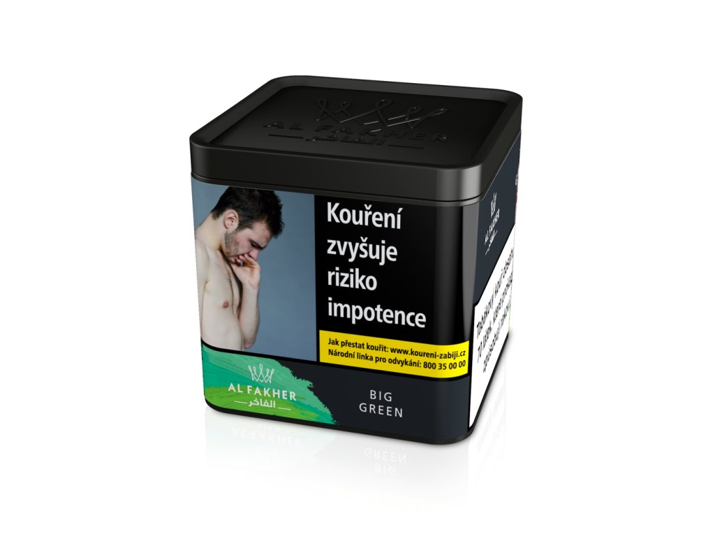 Al Fakher Big Green – intenzivní a dokonale čistá mátová příchuť, která přináší maximální svěžest bez jakýchkoliv ovocných tónů. Výrazná, ale vyvážená chuť máty poskytuje silný chladivý efekt, jenž osvěžuje a čistí chuť s každým tahem.