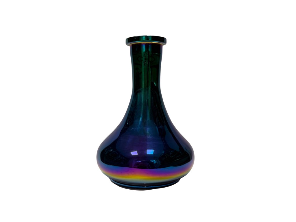 Elegantní skleněná váza pro vodní dýmku v originálním metalickém duhovém provedení. Vyrobena z odolného skla se stabilní širokou základnou, která zaručuje pohodlný tah a pevné usazení dýmky. Díky univerzálnímu hrdlu je vhodná pro většinu dýmek se spojením na těsnění.