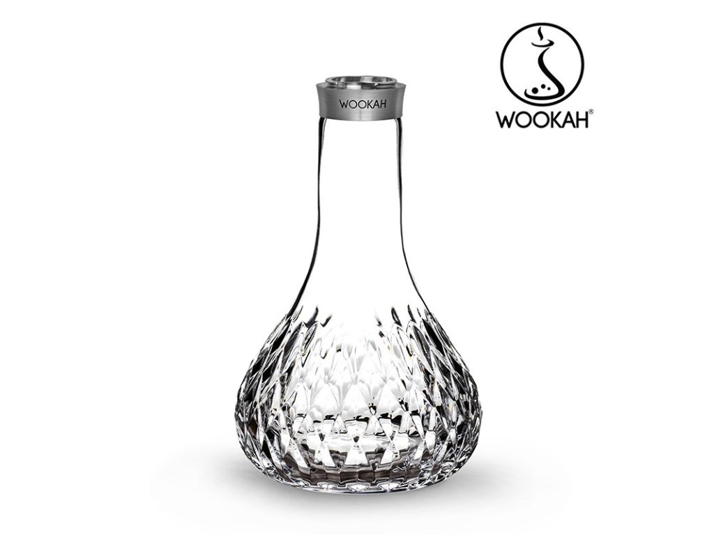 Součástí je závit z nerezové oceli třídy 1.4301 (V2A) s gravírováním WOOKAH. Povrch vázy je zcela transparentní a zdobený jedinečnými, ručně zpracovanými brusy Bloom, díky nimž je každý kus originál.