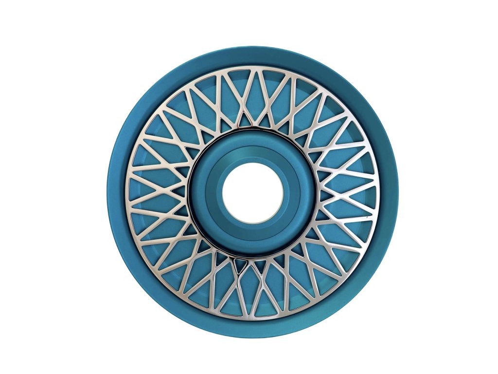 Šachta, dřík a integrovaný lapač melasy jsou vyrobeny z nerezové oceli AISI 304 s povrchovou úpravou PVD, což zajišťuje maximální odolnost, čistotu chuti a dlouhou životnost. Dekorativní prvky jsou z eloxovaného hliníku a doplněny barevnou texturou Aqua, která dodává dýmce výraznou estetickou hodnotu.
