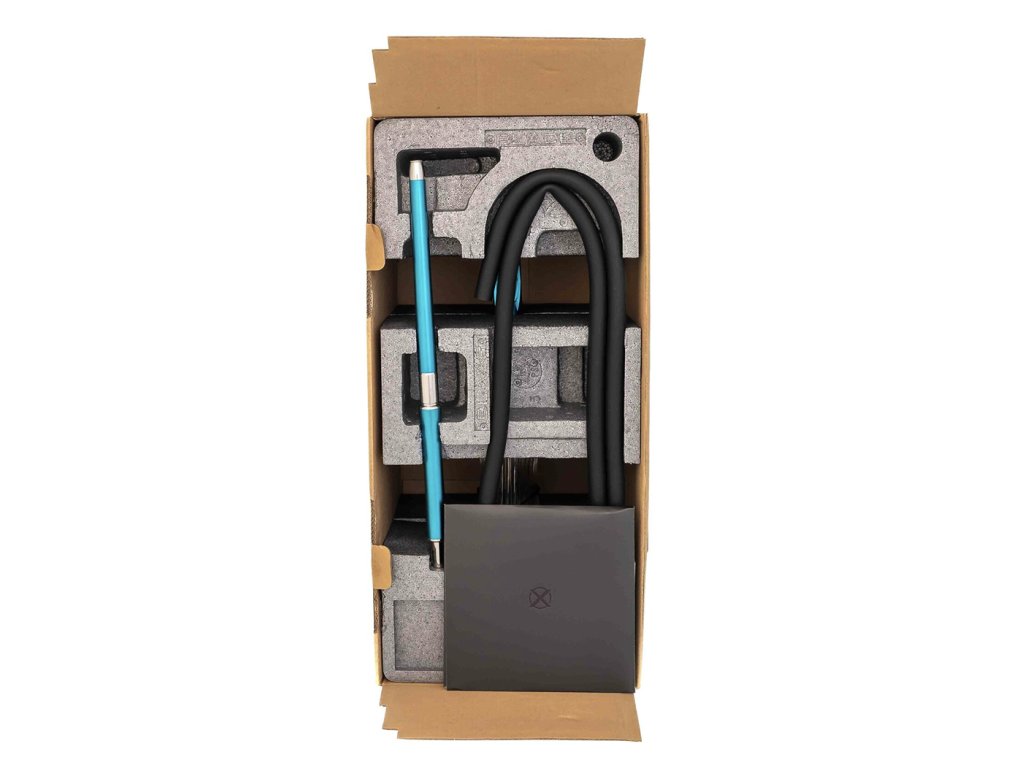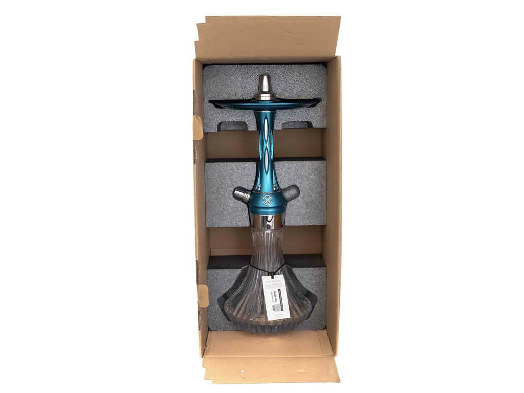 Součást balení: tělo dýmky, váza Blade Glass Bottle, talířek 18 cm, integrovaný lapač melasy, magnetický konektor a port hadice, šroubovací difuzor, těsnění a spojovací prvky, hadice