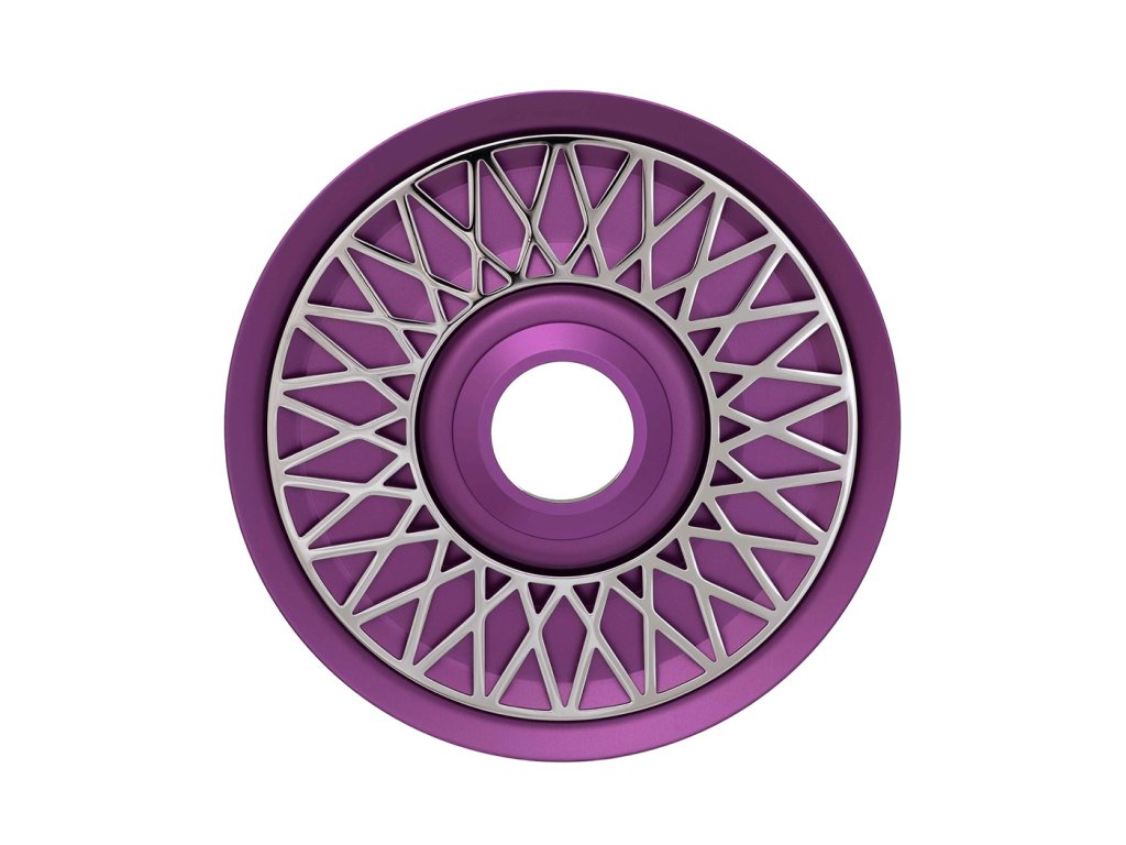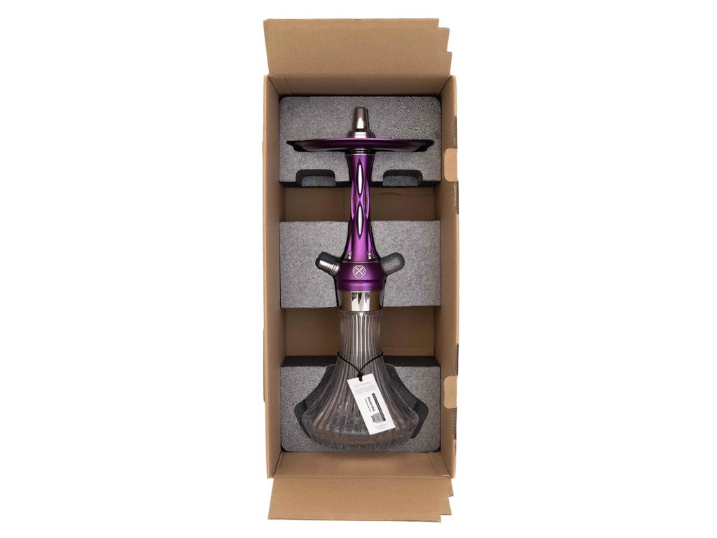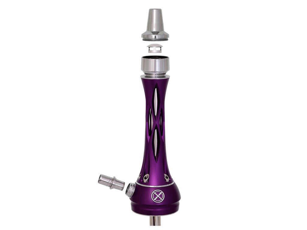 Šachta, dřík a integrovaný lapač melasy jsou vyrobeny z nerezové oceli AISI 304 s povrchovou úpravou PVD, což zajišťuje maximální odolnost, čistotu chuti a dlouhou životnost. Dekorativní prvky jsou z eloxovaného hliníku a doplněny barevnou texturou Purple, která dodává dýmce výraznou estetickou hodnotu.