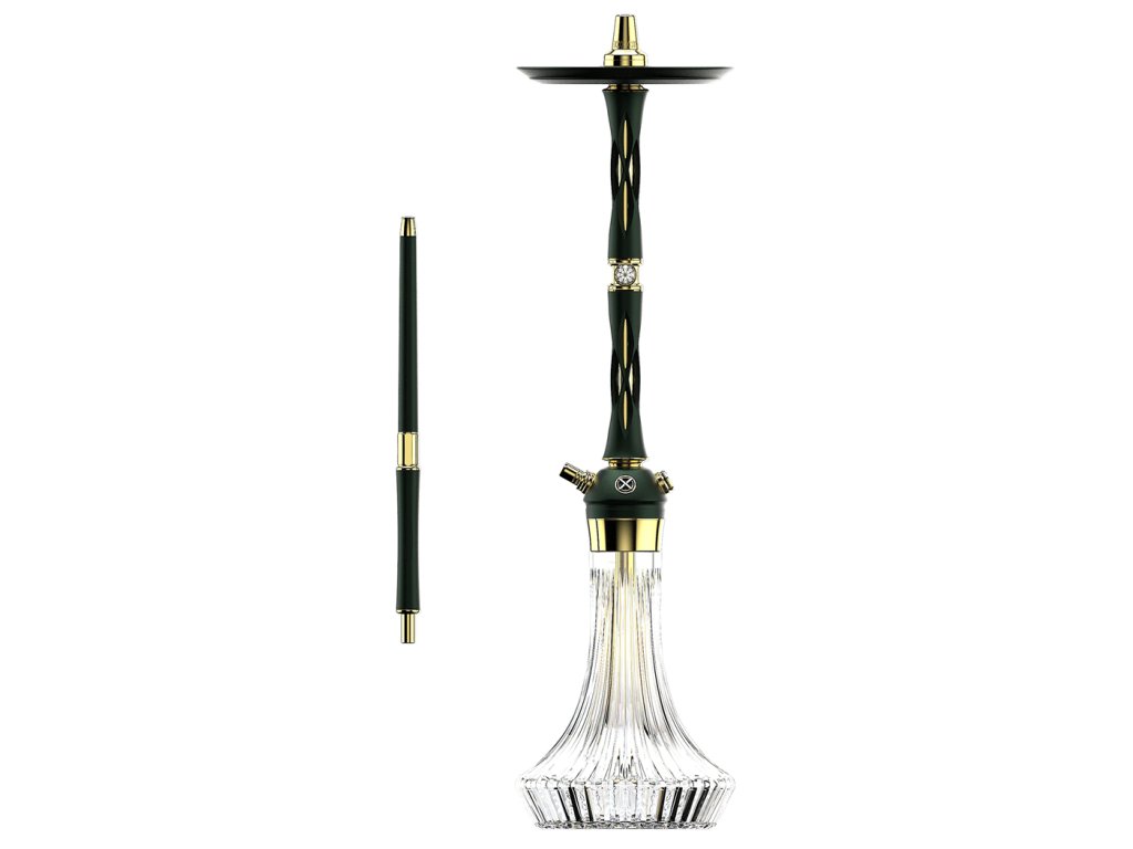 Blade Hookah LE2 Green je prémiová vodní dýmka z limitované edice, která spojuje moderní technologii, elegantní design a špičkové materiály. Tělo dýmky, dřík a integrovaný lapač melasy jsou vyrobeny z nerezové oceli AISI 304 s povrchovou úpravou PVD, která zajišťuje vysokou odolnost proti korozi a mechanickému poškození. Dekorativní prvky jsou vyrobeny z eloxovaného hliníku a doplněny o stylový kamenný detail.