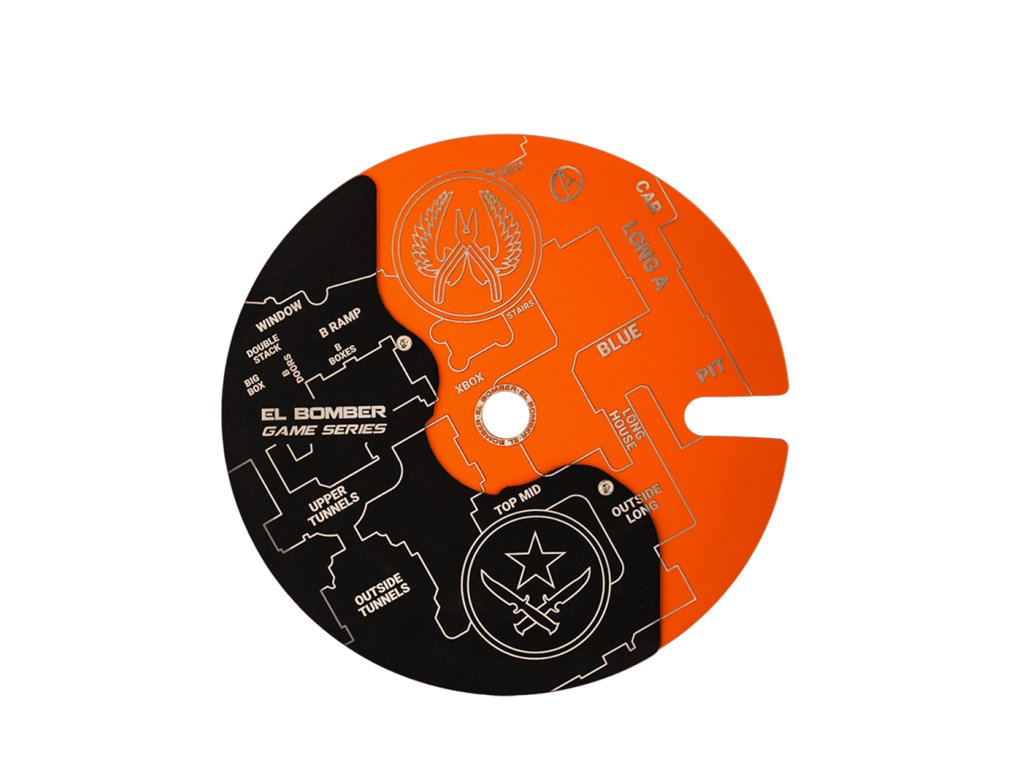 - Talířek je stylizován jako legendární mapa Dust 2 s označením stran útoku a obrany – symbol respektu k aréně, kde se rodí legendy.