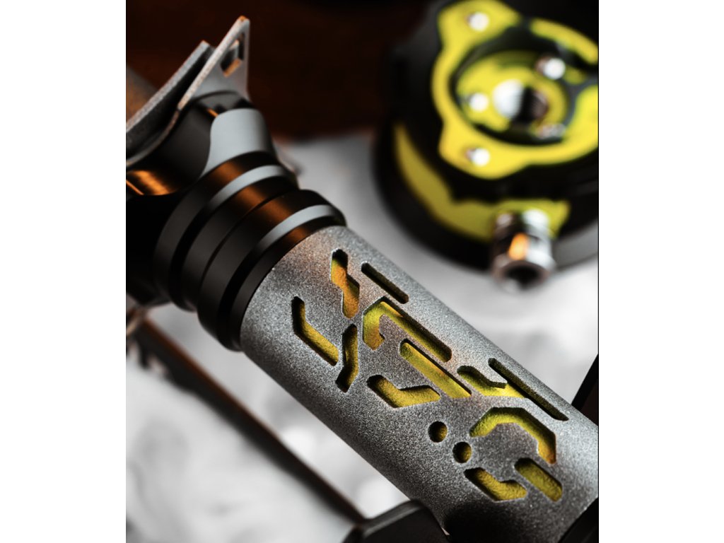 Tvar šachty vychází z linie původního meče wakizashi, který představuje čest, disciplínu a mistrovství. Futuristické kontury, ostré geometrické hrany a výrazné barevné akcenty vytvářejí efekt „meče z budoucnosti“, zatímco designový talířek s grafikou samuraje v digitálním stylu dodává modelu unikátní vizuální charakter.