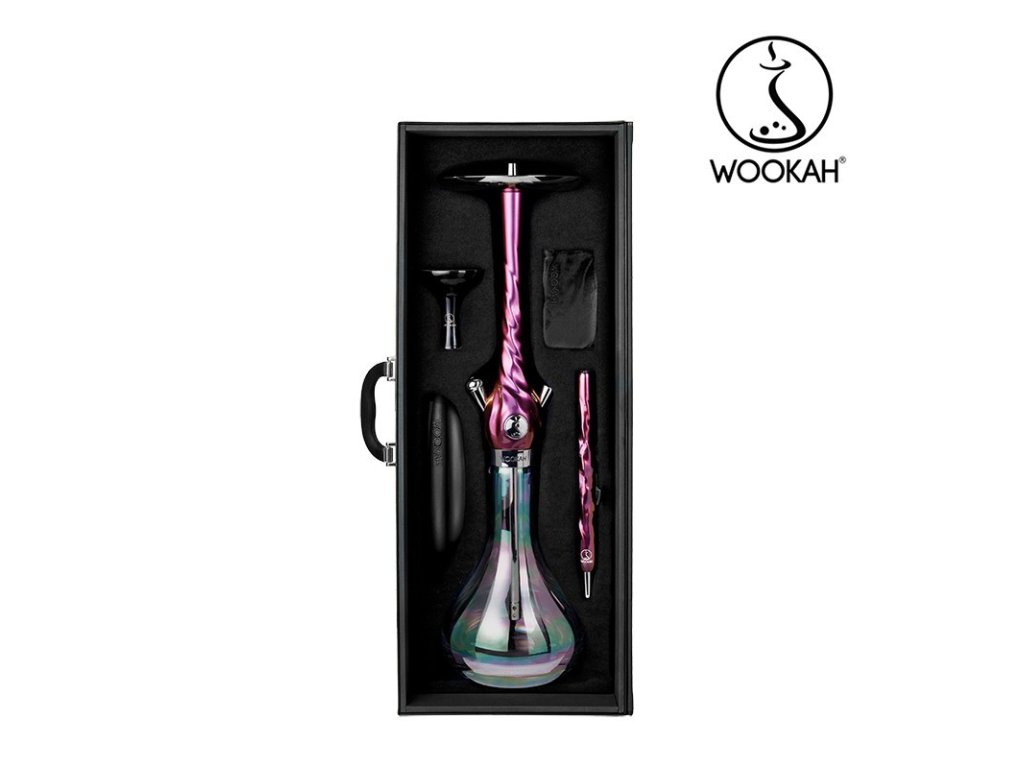 Obsah balení: tělo WOOKAH Chameleon (včetně vnitřního nerezového tubusu a speciálního ventilačního systému), váza WOOKAH Luster, černá kožená hadice WOOKAH, dřevěný náustek WOOKAH Chameleon, korunka WOOKAH Funnel Flow, rukavice WOOKAH Care Gloves, leštěný port pro korunku, leštěný talířek, leštěná ventilová sada, leštěný konektor hadice, leštěný downstem, délka: 210 mm, speciální kufr, sada O-kroužků, certifikát pravosti